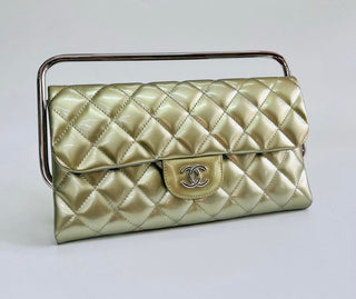 Chanel Runway SS14 Quilted Classic Frame Clutch Flap Bag Green Patent Leather