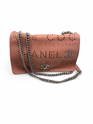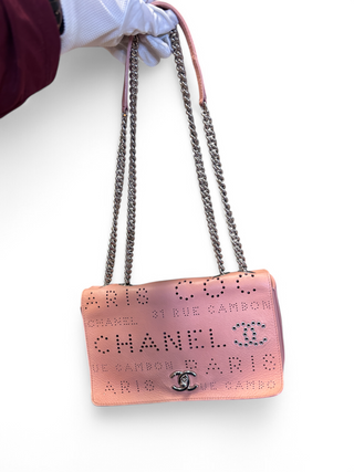 Chanel Logo Mania Eyelets Flap Bag in Perforated Calfskin with Tweed Pouch