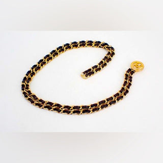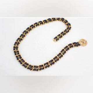 Chanel Double Chain Waist Belt Necklace 90s Era 24K Gold Plated Leather Vintage