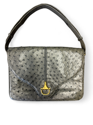 Gucci Ostrich Horsebit Vintage 70s Shoulder Bag Purse