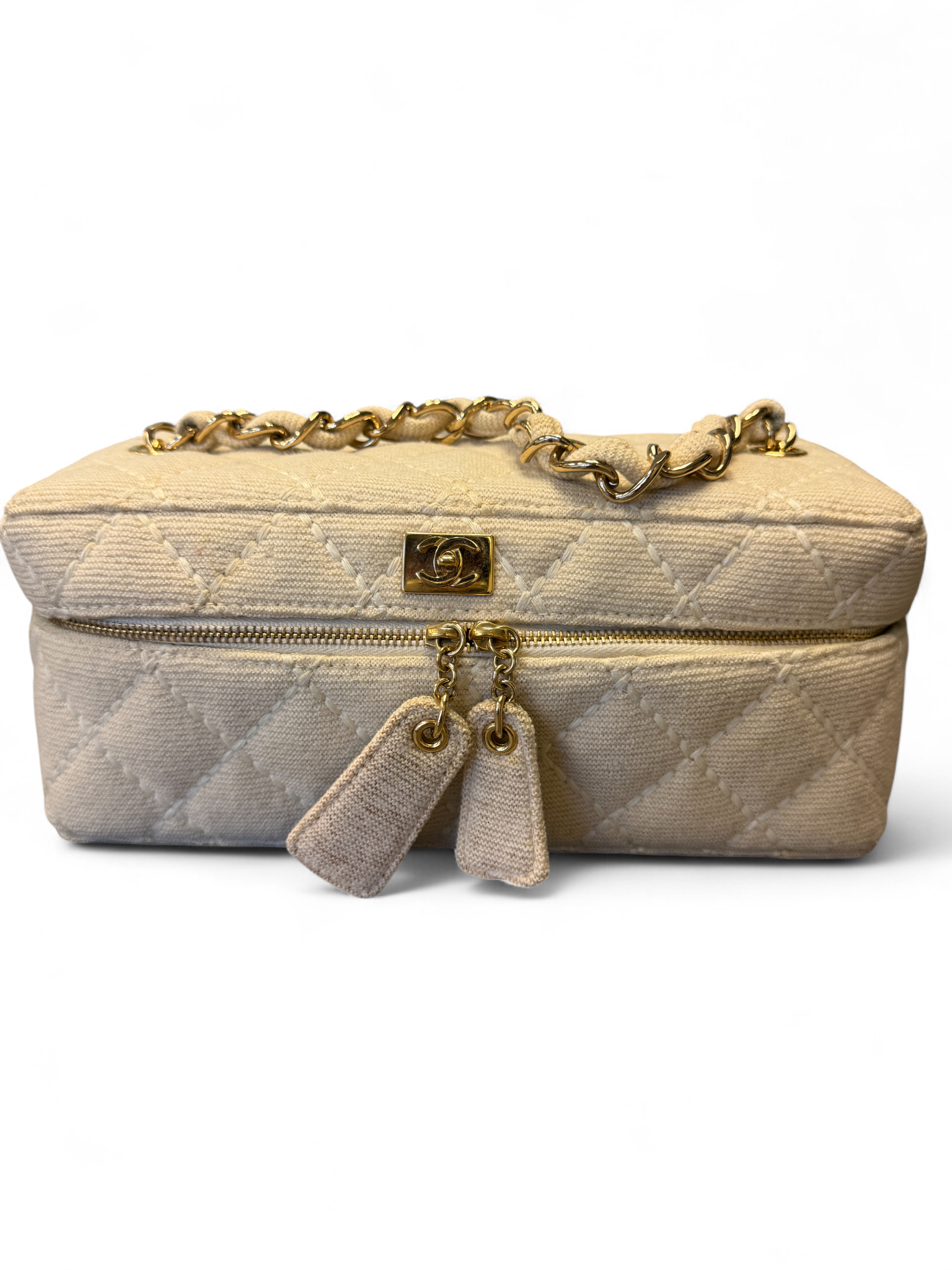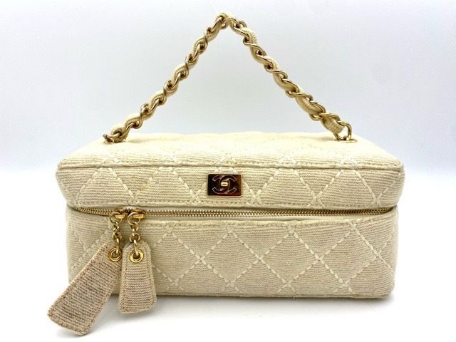 Chanel Beige Wool Wild Stitch Vanity Vintage Y2K Era Bag